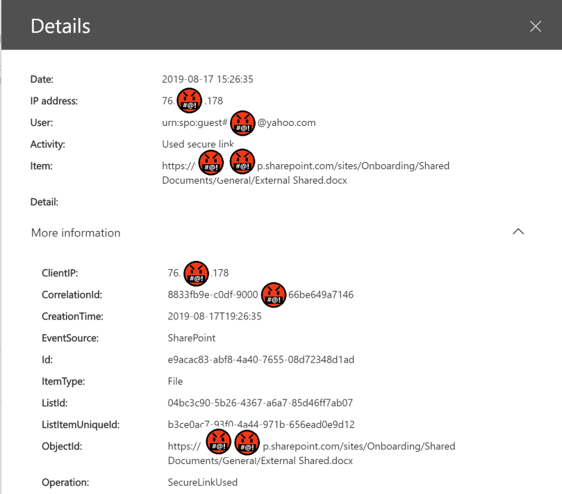 Conclusion: If you can access the ‘Security & Compliance’ admin center AND you can access the search logs, THEN you can audit your externally shared content. The results can be exported to Excel, including content from the Details pane content, but you can also select a result and review its detailed information. Hope this helps…