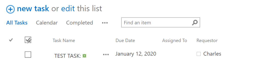 The Tasks app generated most of the columns that I needed. Emphasis on “most”… But for my ticketing system, I want to include a Requestor column. This will be a people picker field that only allows a single entry: