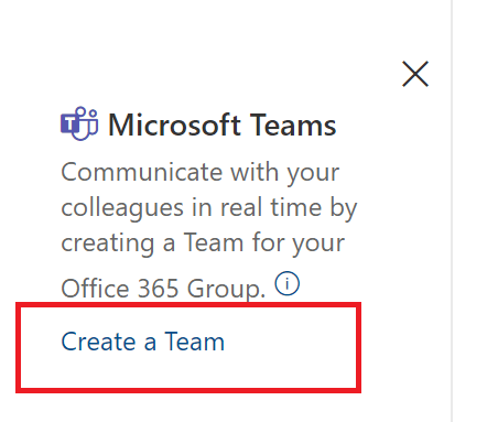 Proceeding to the next phase, I return to the home page. Under my left-hand navigation is the option to associate Microsoft Teams with my Support Group site. This kicks off a background process to create my Team…