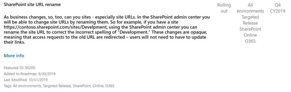 This will be a game changer, but it still helps to be intentional with site names. Why? Because if I update the URL of my SPO site and its a group connected site, then my connected apps could be impacted:
