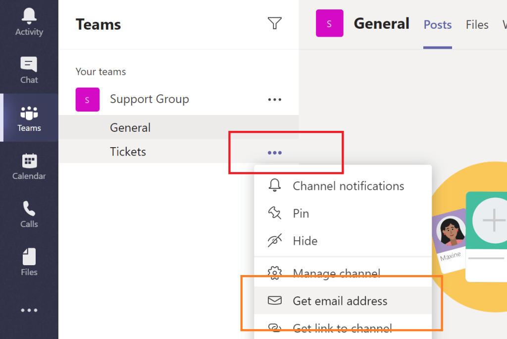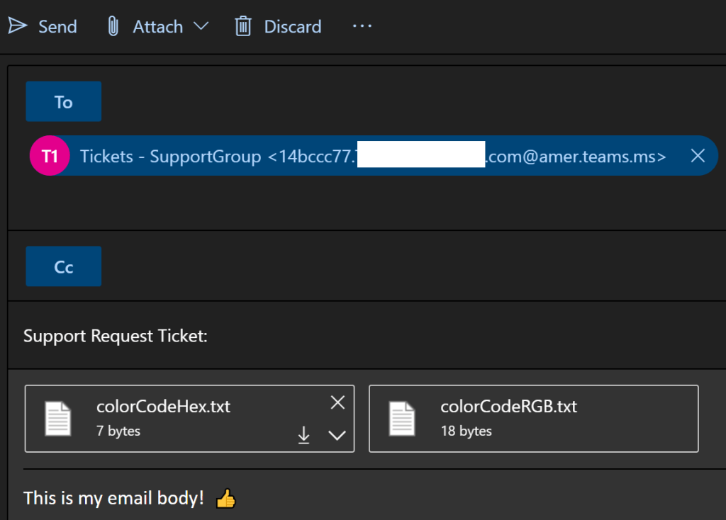 Done! The team was created in Microsoft Teams and this created the back-end SPO site. Within the Support Group team, the Tickets channel was created and its email address is copied for testing…