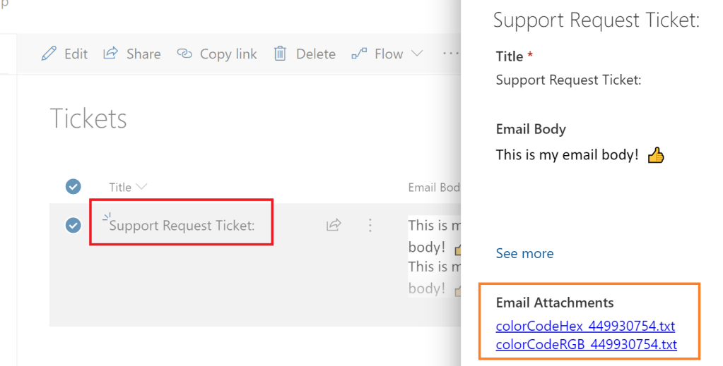 Creating a basic ticketing system in [SharePoint Online] is easy. But to include the email attachments, a few additional steps are needed. Luckily, Microsoft Teams and Power Automate will handle the heavy lifting again. Despite that, here are some semi-vague instructions: