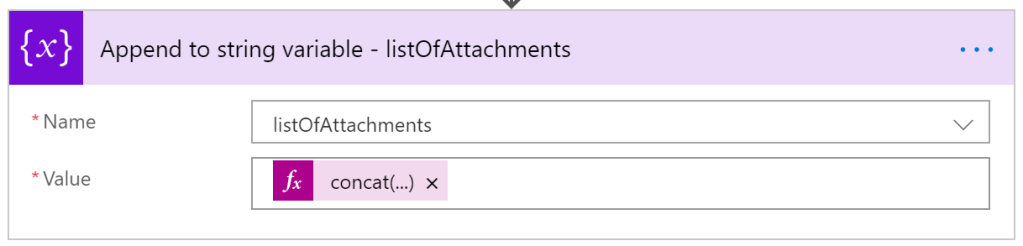 - Append the concatenated attachment link to the listOfAttachments variable.