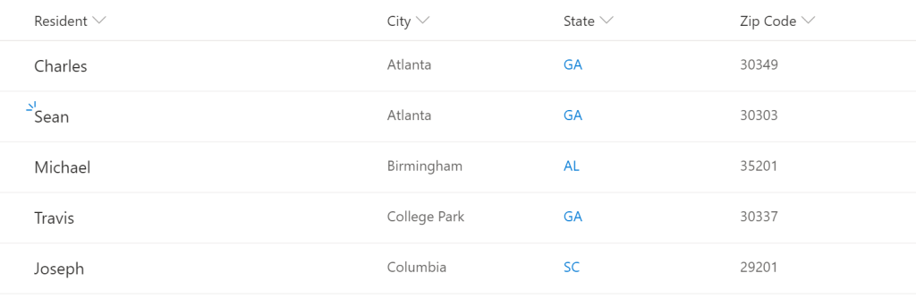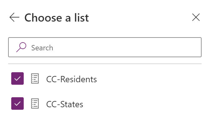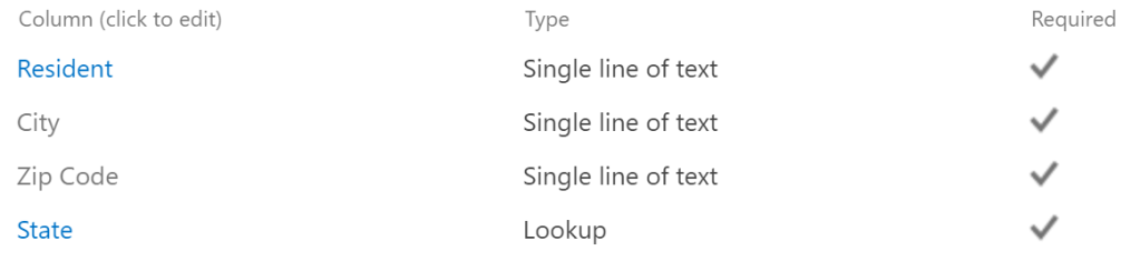 Once the SPO lists are created, add some entries to CC-States, then add some entries to CC-Residents. The data sources are now configured…