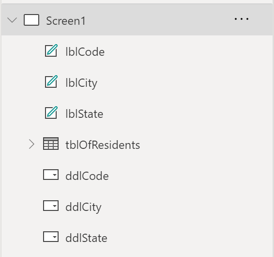 Once the app loads, the OnVisible property of Screen1 is processed. But for dynamic selection, the following formulas are added to the OnChange property of ddlState: