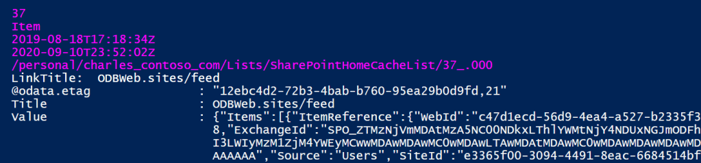 Auditing [OneDrive for Business] sites with PowerShell and the Microsoft Graph API uncovered several hidden lists. The SharePointHomeCacheList is one of these lists, but it offers more information than the previously discussed lists. Continuing the trend of examination: