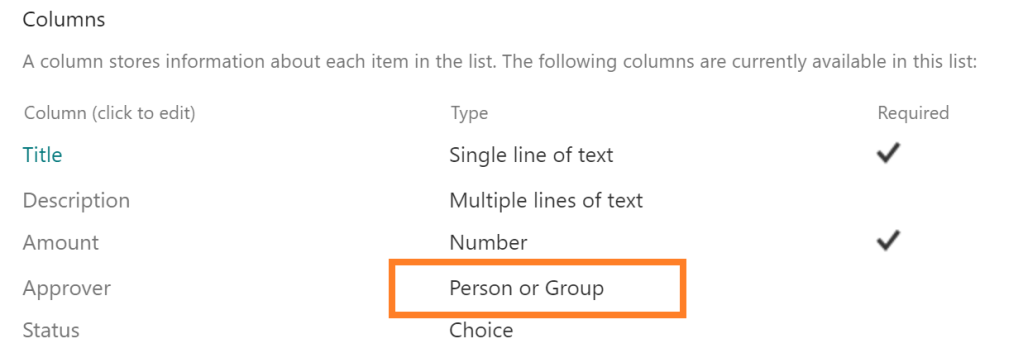- Approver as a person column