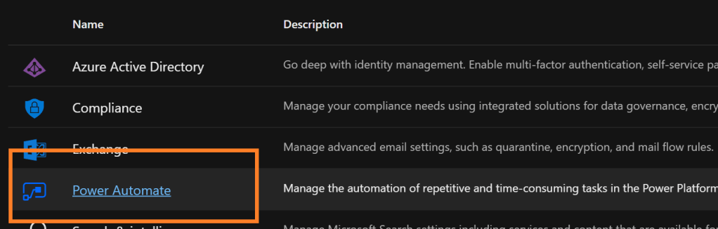 If this wild error message appears when saving the flow, then the Office 365 Users connector needs to be listed as an approved business connector. From the Microsoft 365 admin center, open the Power Automate admin center:
