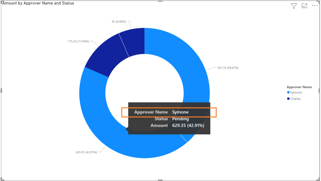 With the Approver title extracted from the record, charts and graphs can be created with breakdowns for each Approver. These records contain several pieces of information specific to the user account. And additional visuals can be created with extracted Created By information. These visual dashboards can be presented to management for tracking reimbursement expenses…