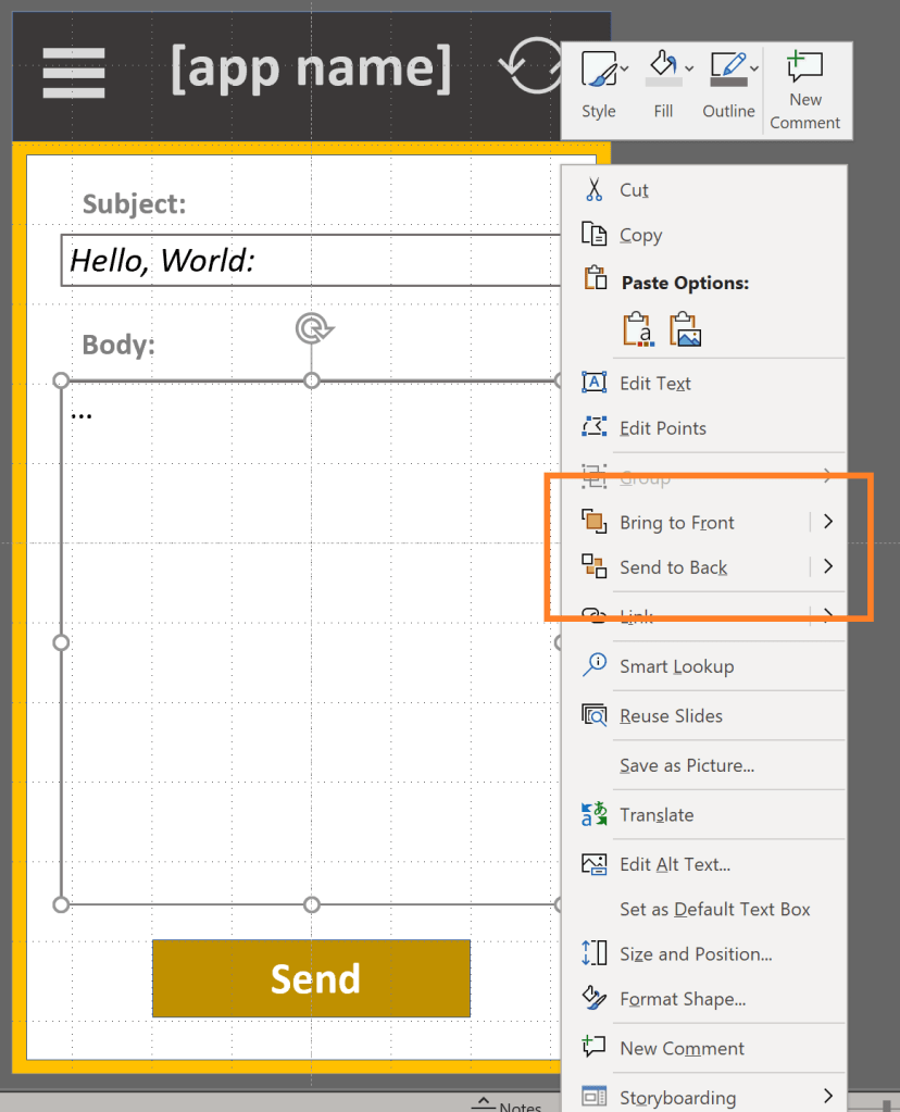 PowerPoint slides can be the pages of the app. For each page, shapes and icons can be added, then layered to create detailed mockups.