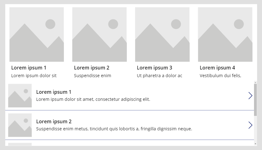 Now, with some data populating the galleries, adjust and size the gallery elements. Each gallery should include multiple picture and text elements. What’s more, the app should include some IG icons along the top: