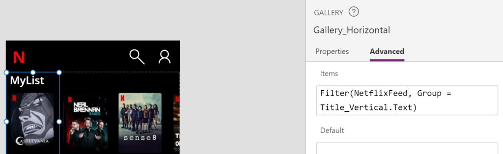 Second entry of this series, a rough mock-up for another Power App. The first recreation was an Intagram-esque app created using two galleries. Likely an oversimplification, but Netflix is also two galleries at its core; although the galleries are used differently. For this Power App, the horizontal gallery is nested within the vertical gallery: