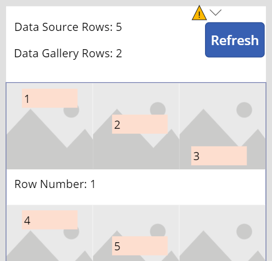 Not really required for the app, but helpful, insert three labels to the gallery. These labels will serve as a visual check of the calculated image indexes. Previously, the Sequence() function created a 1-based array. The below calculations subtract 1 to pretend it was a 0-based array:
