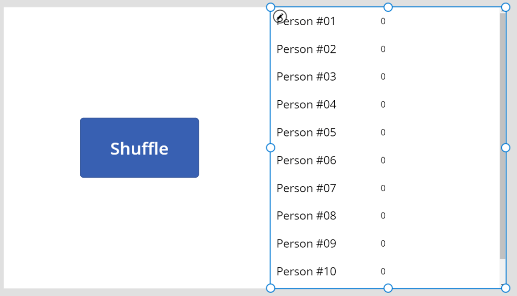 As expected, the names are listed in their original order. Next, add a button to the canvas for shuffling: