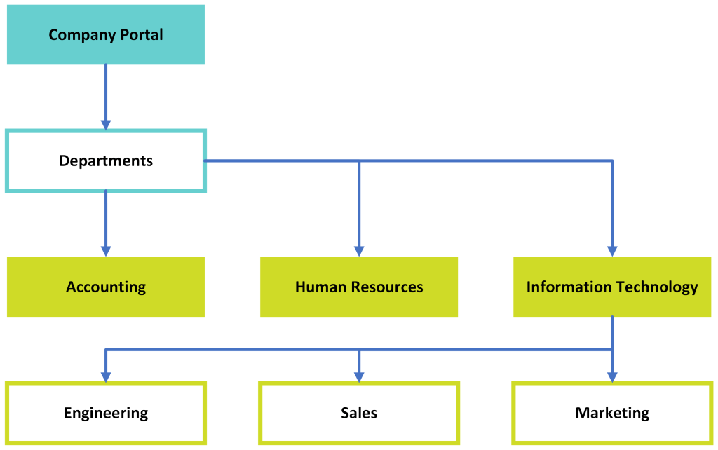 Then, under the Portal collection, Departments would be created as a sub-site: