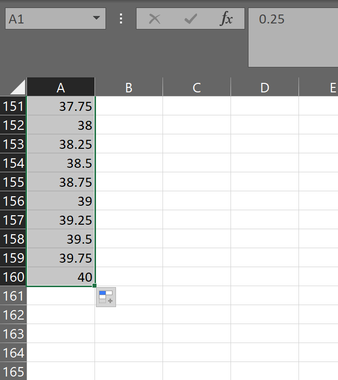 The big ask? Can the dropdown values span from 0.25 to 40? Yes, but typing that many options is needlessly time consuming and error prone: